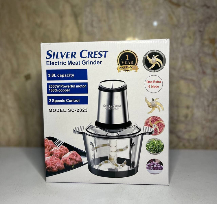 خردکن سیلور کرست اصلی حک شده ظرفیت ۳/۸لیتر کاسه پیرکس شفت فلزی ۶ تیغه تیتانیوم سیرپوست کن وهمزن با گارانتی یکساله