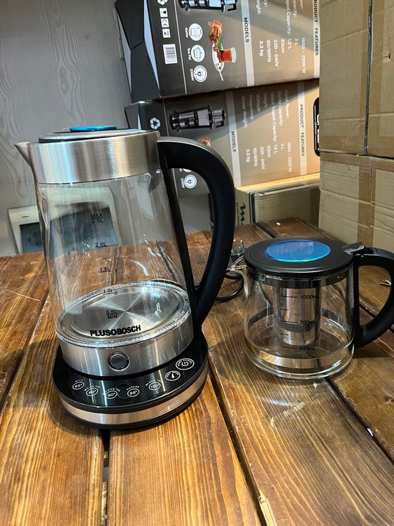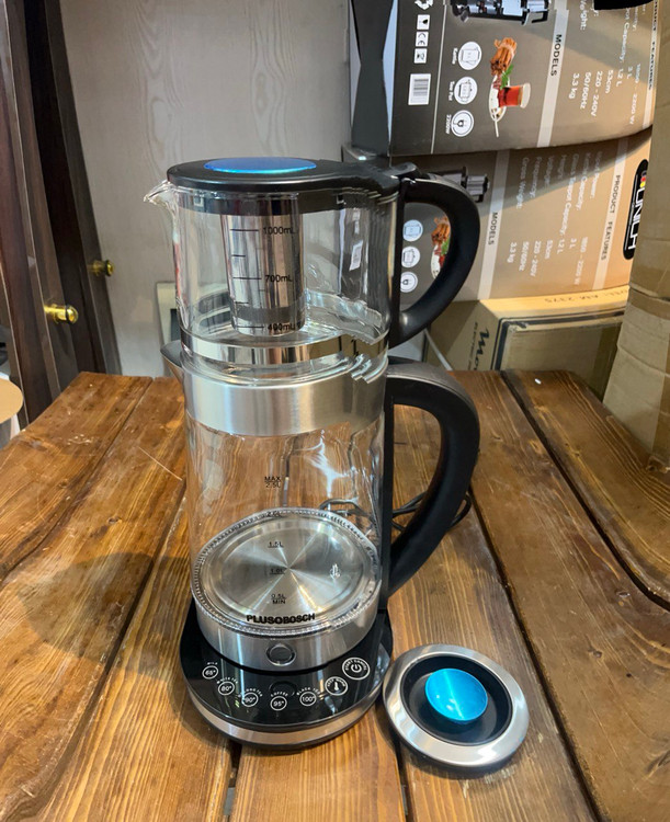برند: بوش توان ۱۸۰۰ وات مصرف انرژی A جنس بدنه کتری و قوری ازپیرکس نشکن ظرفیت کتری ۲.۵ لیتر ظرفیت قوری ۱ لیتر انواع برنامه برای دمنوش و چایی قطع کن خودکار دارای حالت گرم نگهدارنده چایی و دمنوش دارای لامپ ال ای دی LCDنماینگر دمای آب